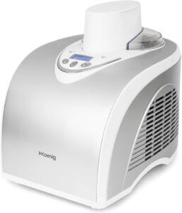 Ce modèle est un véritable chouchou des consommateurs, il a d’excellents avis sur la toile. Vous pouvez vous offrir cette turbine à glace de marque allemande H.Koenig et ainsi vous préparer des glaces comme chez nos amis italiens. La capacité de 1 litres et sa puissance de 135 watts devrait conférer une entière satisfaction pour la fabrication de crème glacée à toute une famille. Notons que si cette turbine à glace est autant appréciée, c’est sans doute pour ses nombreuses fonctionnalités comme notamment le maintien au froid. Et comme on a tous quelqu’un qui s’y connait en santé, sachez que cette sorbetière a été fabriqué avec des matériaux qui ne contiennent aucunes traces de bisphénol. Cerise sur le gâteau, cette turbine à glace professionnelle ne coute vraiment pas cher !